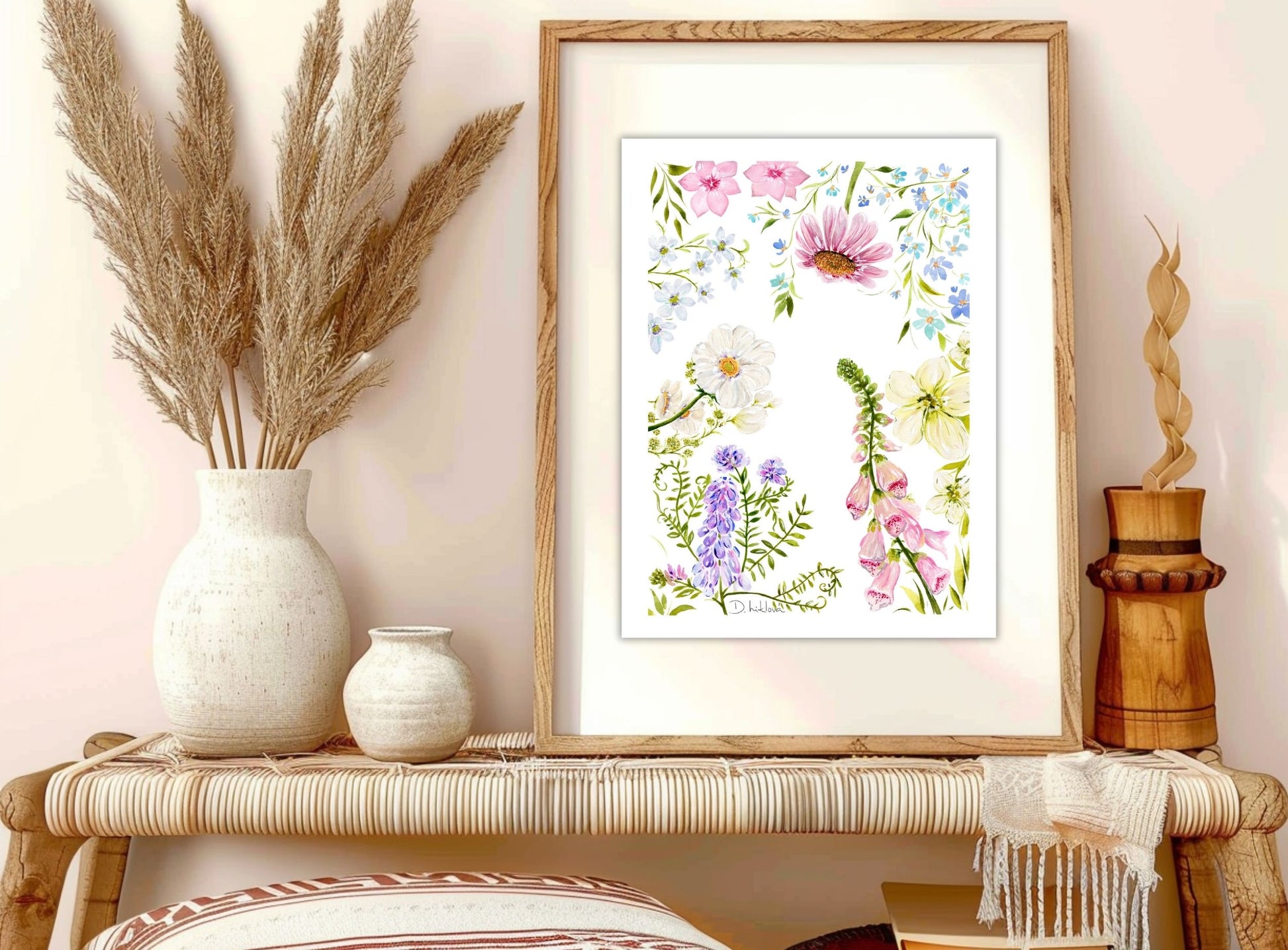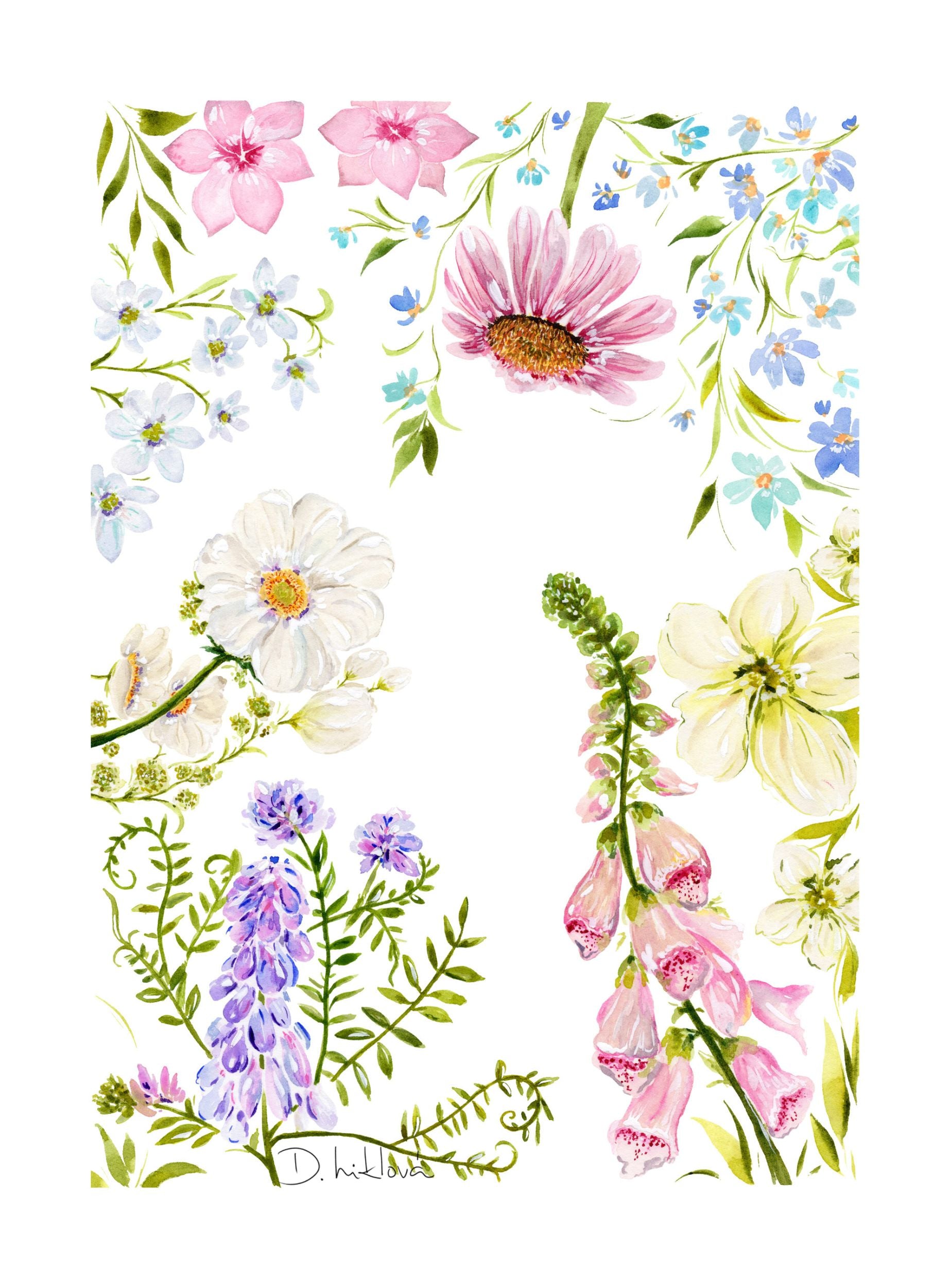 Květinový herbář – jemný fine art tisk z autorské akvarelové malby. Luční květiny, zahradní něha a jemné tóny léta přinášejí do interiéru klid, lehkost a dotek české přírody. Ideální pro milovníky květin, venkova a domovů, kde vládne jemnost, vůně zahrady a tiché kouzlo přírody.
